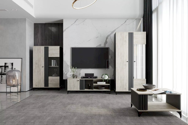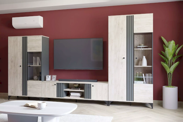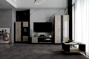 Комбинированный шкаф Отис выполнен в модной цветовой гамме дуба с контрастным антрацитом и отлично впишется в такие интерьеры, как лофт или скандинавский. Строгая геометрия реечных фасадов придает изделию сдержанности и минимализма.
