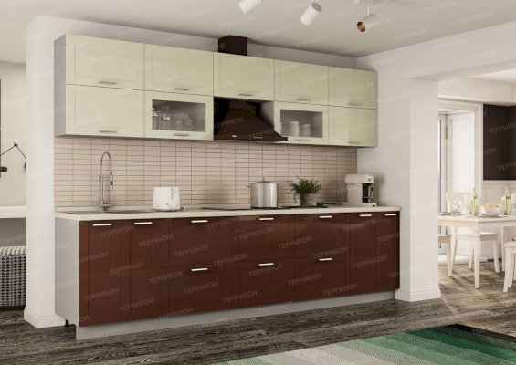 Цветовое решение: серый/крем-брюле + горький шоколад глянец.