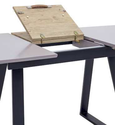 Дополнительная вкладка стола выполнена из МДФ с бумажным шпоном цвета беленого дуба. На вкладке предусмотрена петля для комфортного открытия стола одной рукой.