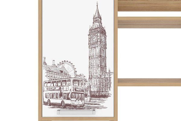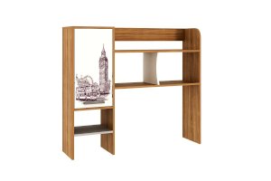 Данная надстройка оборудована вместительными полками, предназначенными для хранения книг, учебников, папок и другой необходимой документации. Также на этих полках можно разместить офисную технику, такую как сканер или принтер. Особенностью дизайна является фасад закрытой ниши с оригинальным принтерным рисунком.
