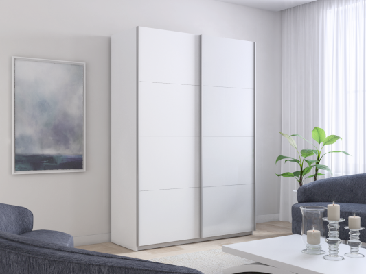 Шкаф-купе 2-х дверный Прайм ДСП/Белое стекло (Е1)