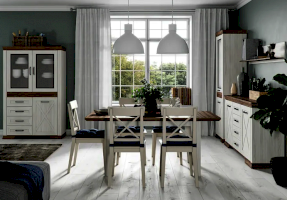 Коллекция MARSELLE - изысканная простота прованса. Светлые фасады со шпросами, массивные карнизы темного дерева – все это смотрится очень элегантно и аутентично.