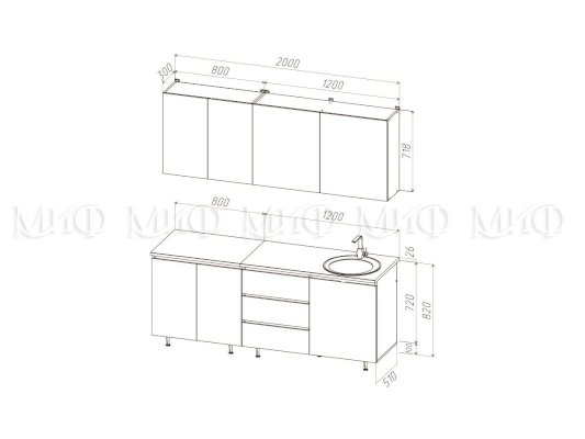 Высота верхних шкафов: 718 мм