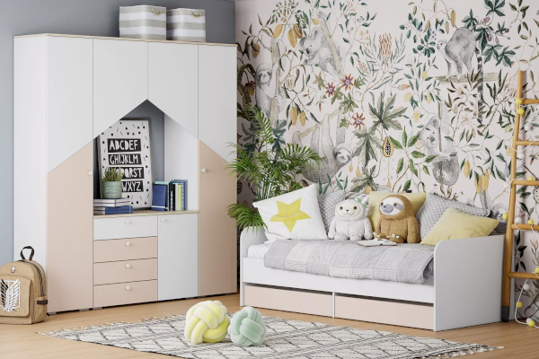 Особенности стиля детской «Банни» - это светлые, спокойные оттенки в единой гамме. Скандинавская стилистика не любит загромождения мебелью. Только функциональность и практичность. Если правильно спланировать интерьер, в детской будет много места для хранения и пространства для игр.