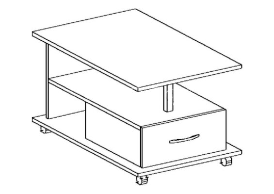 - Компактный и удобный столик с выдвижным ящиком.
